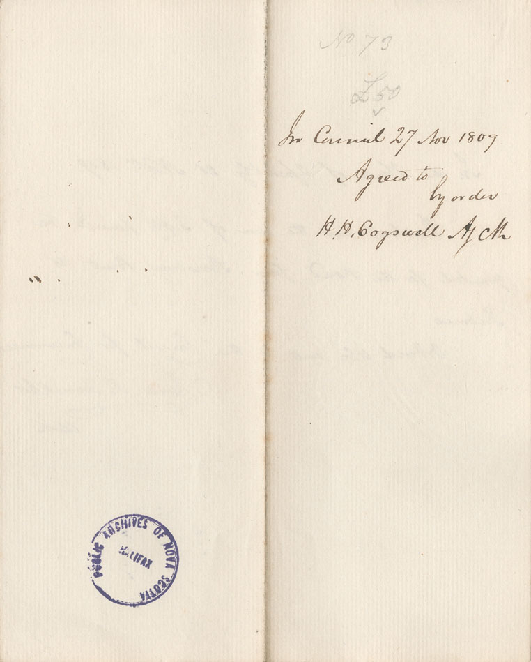 Reference: Nova Scotia House of Assembly Nova Scotia Archives RG 5 Series A volume 16 number 55