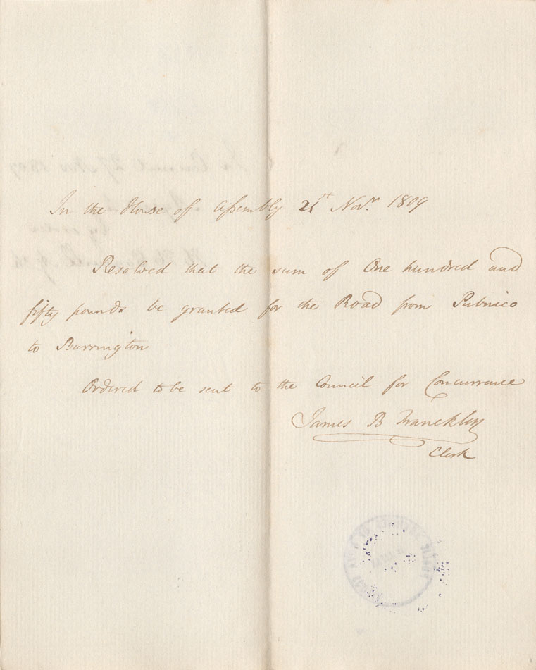 Reference: Nova Scotia House of Assembly Nova Scotia Archives RG 5 Series A volume 16 number 55