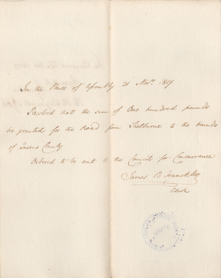 Reference: Nova Scotia House of Assembly Nova Scotia Archives RG 5 Series A volume 16 number 55