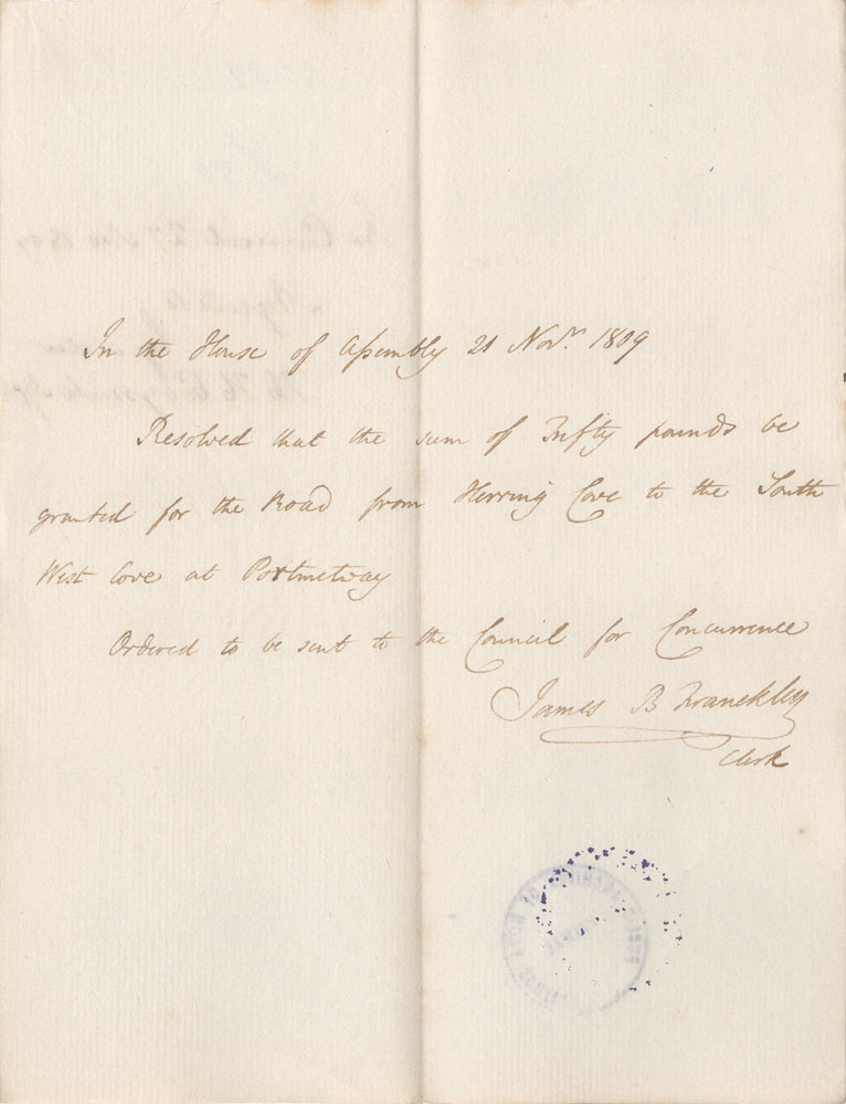 Reference: Nova Scotia House of Assembly Nova Scotia Archives RG 5 Series A volume 16 number 55