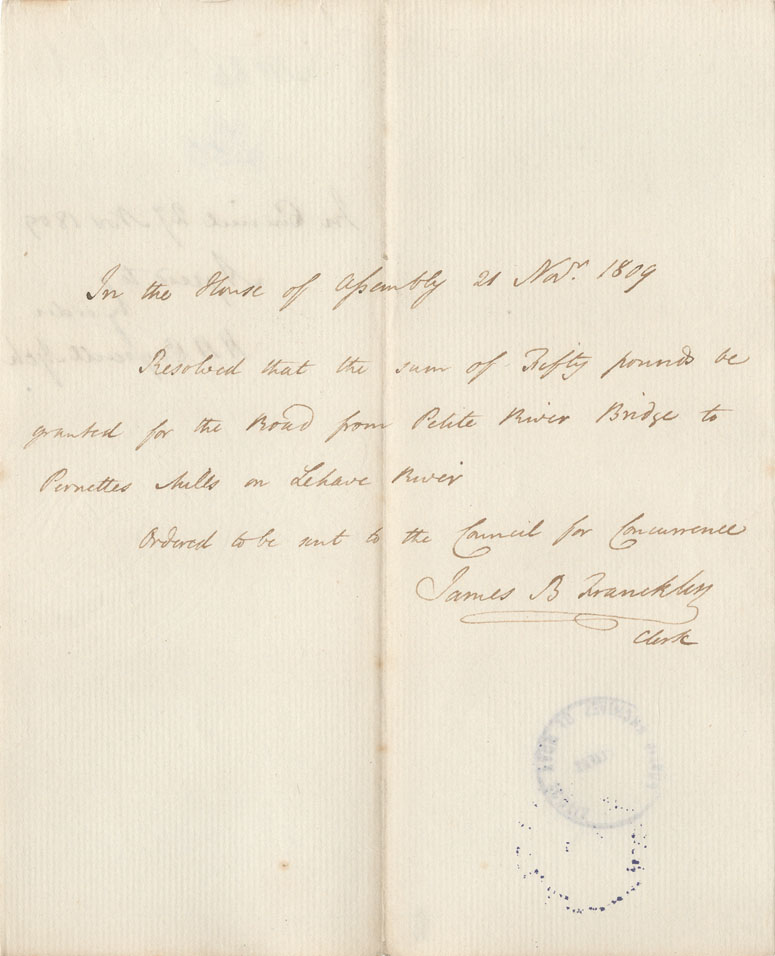 Reference: Nova Scotia House of Assembly Nova Scotia Archives RG 5 Series A volume 16 number 55