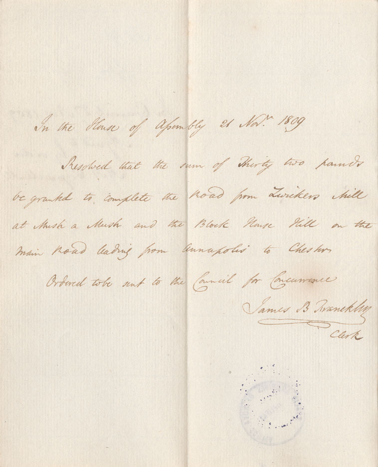Reference: Nova Scotia House of Assembly Nova Scotia Archives RG 5 Series A volume 16 number 55