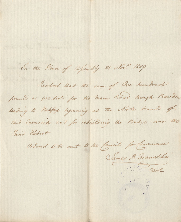 Reference: Nova Scotia House of Assembly Nova Scotia Archives RG 5 Series A volume 16 number 55
