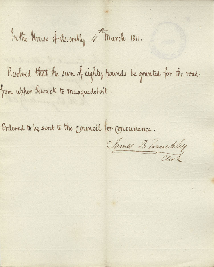 Reference: Nova Scotia House of Assembly Nova Scotia Archives RG 5 Series A volume 17 number 49