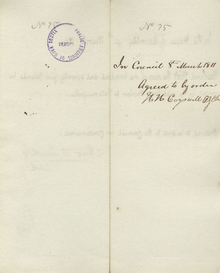 Reference: Nova Scotia House of Assembly Nova Scotia Archives RG 5 Series A volume 17 number 49