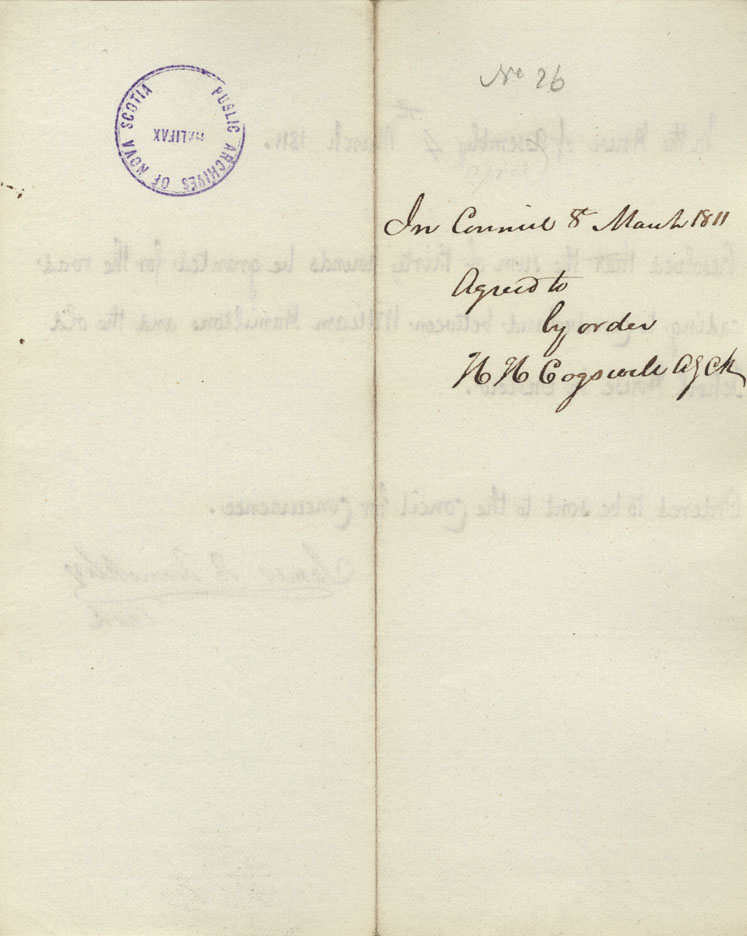 Reference: Nova Scotia House of Assembly Nova Scotia Archives RG 5 Series A volume 17 number 49