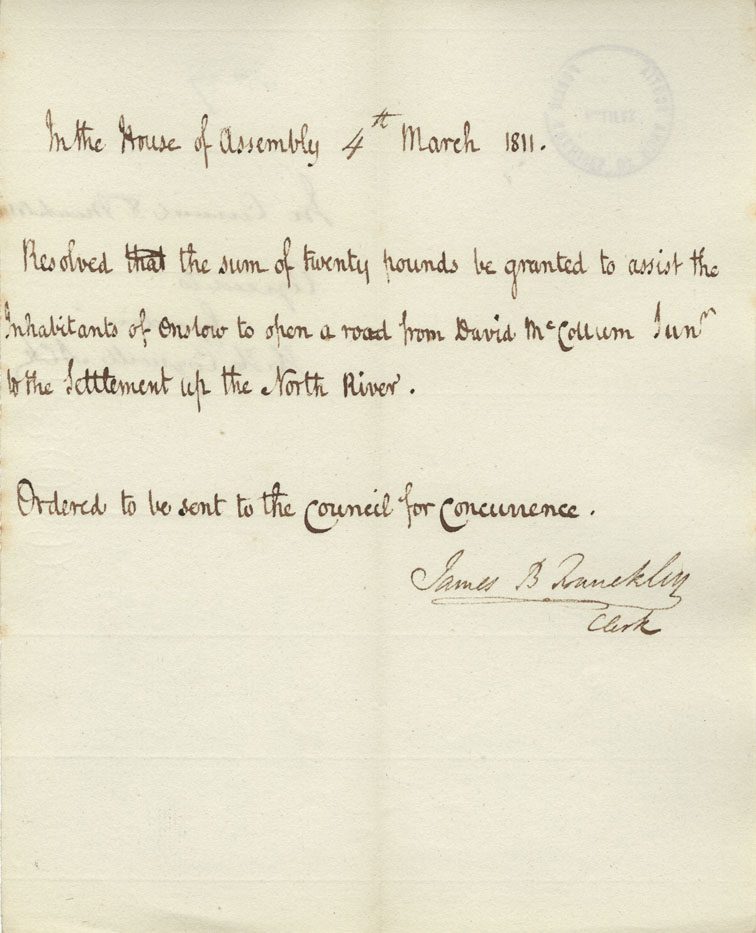 Reference: Nova Scotia House of Assembly Nova Scotia Archives RG 5 Series A volume 17 number 49