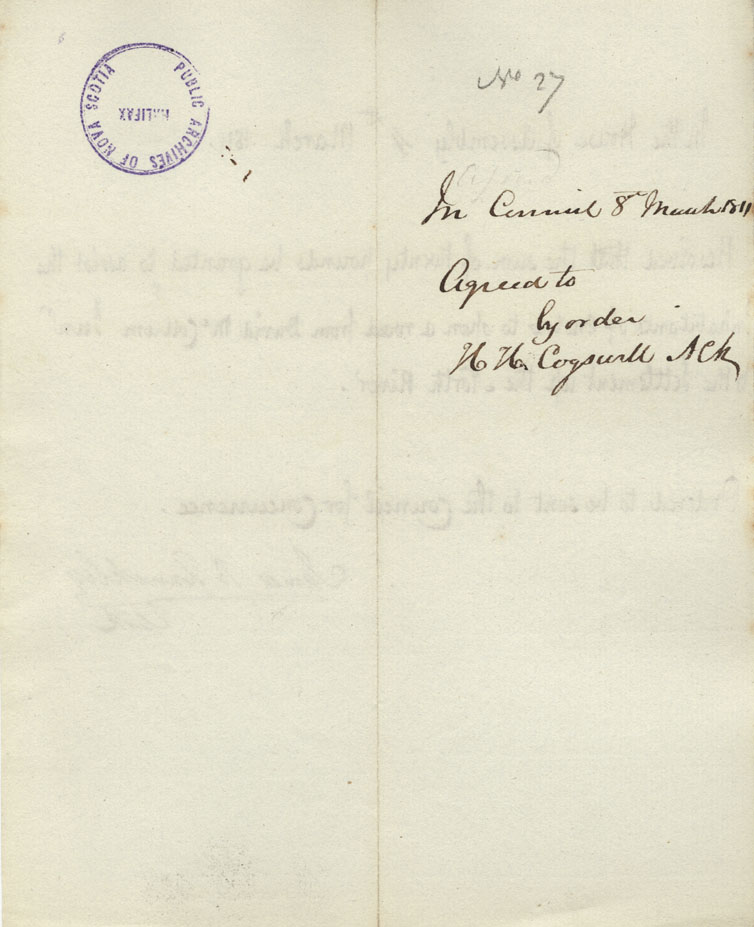Reference: Nova Scotia House of Assembly Nova Scotia Archives RG 5 Series A volume 17 number 49
