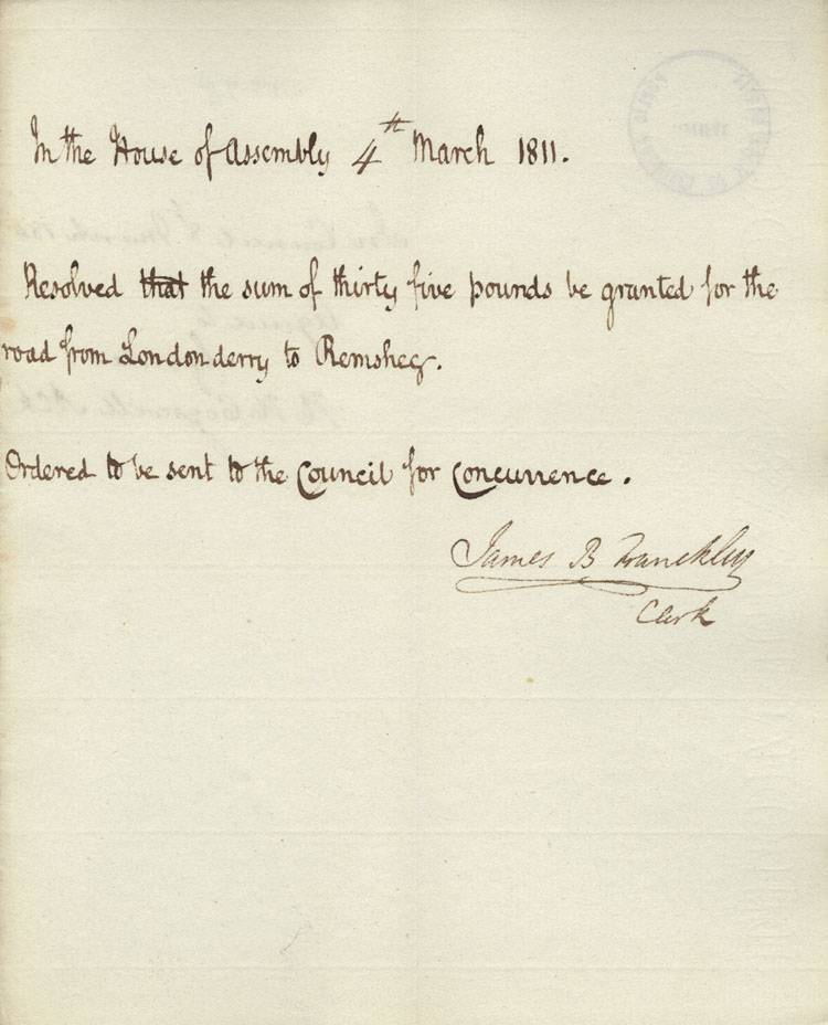 Reference: Nova Scotia House of Assembly Nova Scotia Archives RG 5 Series A volume 17 number 49
