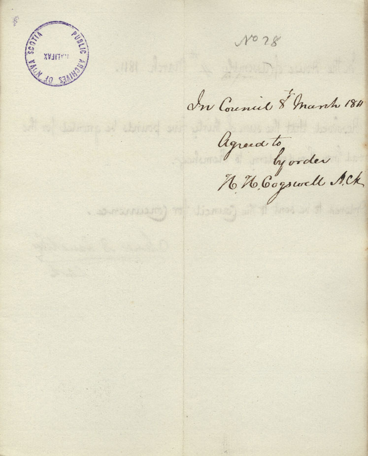 Reference: Nova Scotia House of Assembly Nova Scotia Archives RG 5 Series A volume 17 number 49