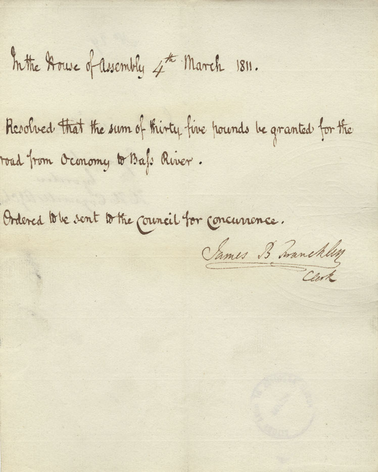 Reference: Nova Scotia House of Assembly Nova Scotia Archives RG 5 Series A volume 17 number 49