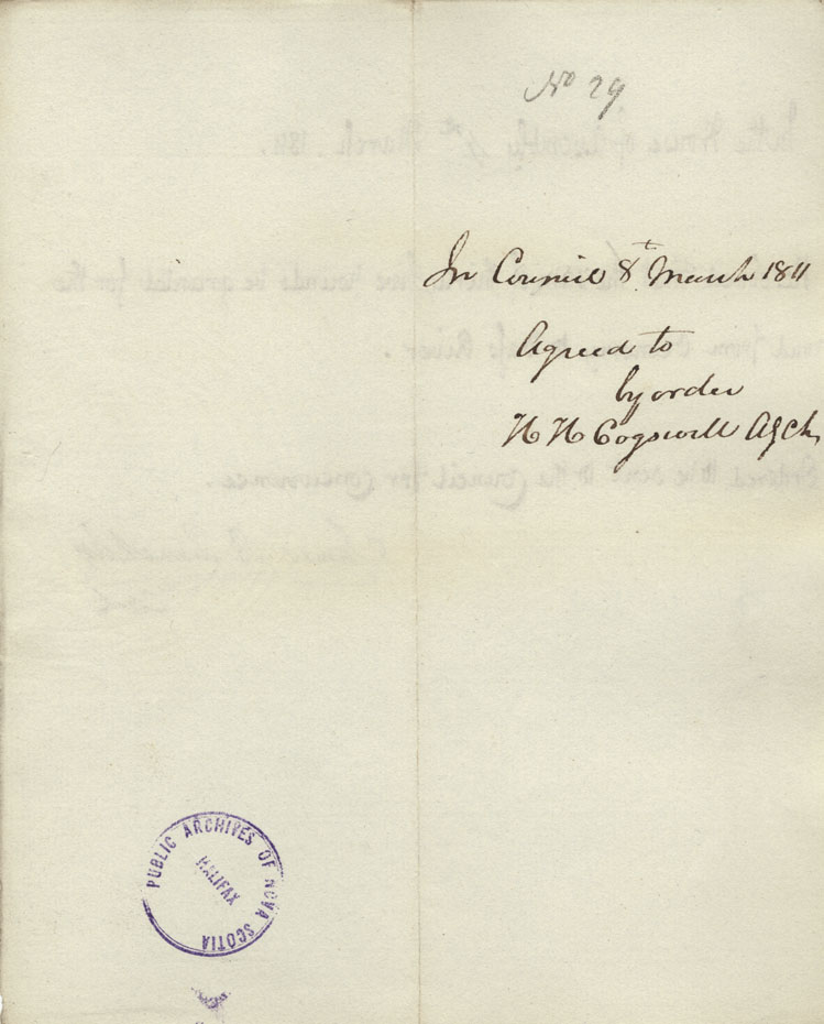 Reference: Nova Scotia House of Assembly Nova Scotia Archives RG 5 Series A volume 17 number 49