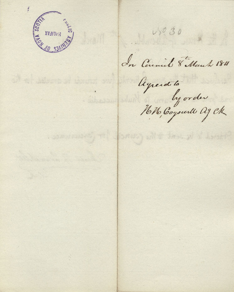 Reference: Nova Scotia House of Assembly Nova Scotia Archives RG 5 Series A volume 17 number 49