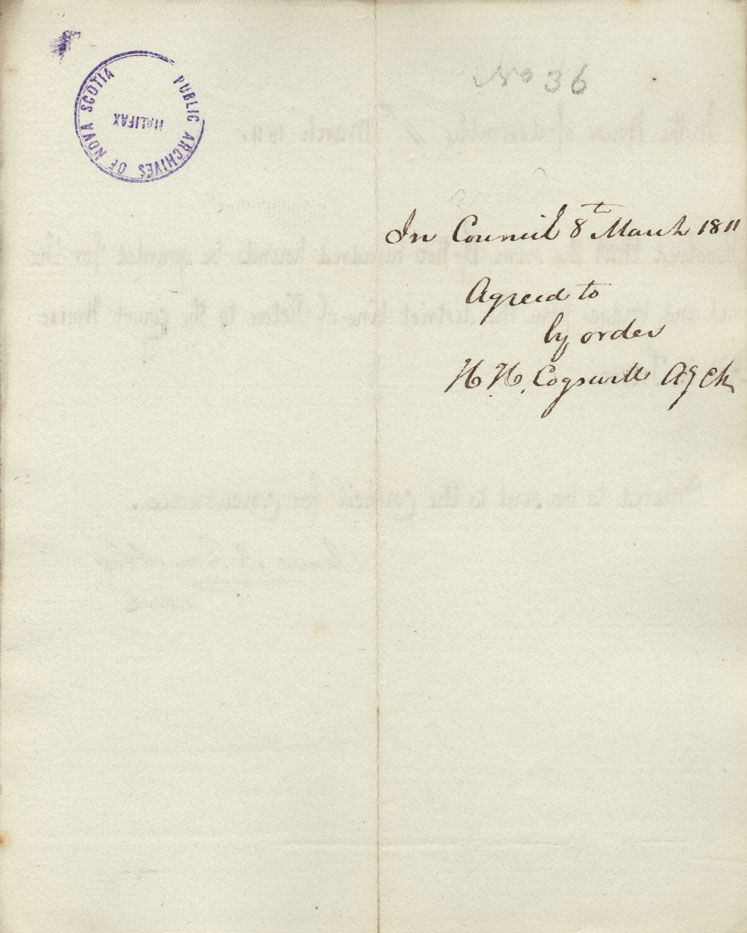 Reference: Nova Scotia House of Assembly Nova Scotia Archives RG 5 Series A volume 17 number 49
