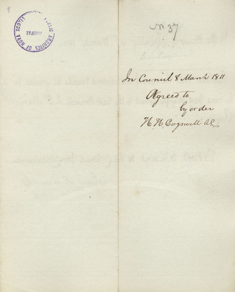 Reference: Nova Scotia House of Assembly Nova Scotia Archives RG 5 Series A volume 17 number 49