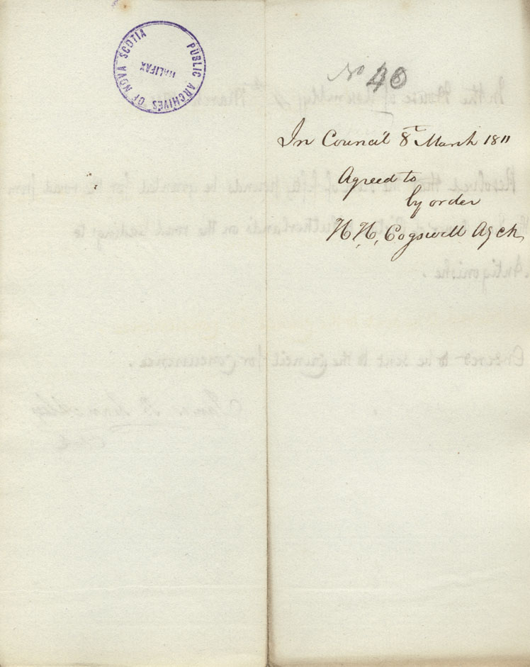 Reference: Nova Scotia House of Assembly Nova Scotia Archives RG 5 Series A volume 17 number 49