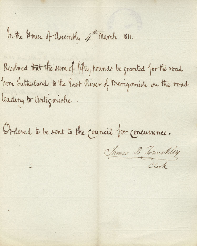 Reference: Nova Scotia House of Assembly Nova Scotia Archives RG 5 Series A volume 17 number 49