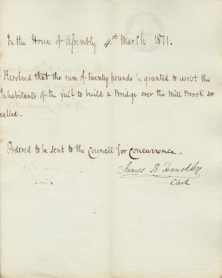 Reference: Nova Scotia House of Assembly Nova Scotia Archives RG 5 Series A volume 17 number 49