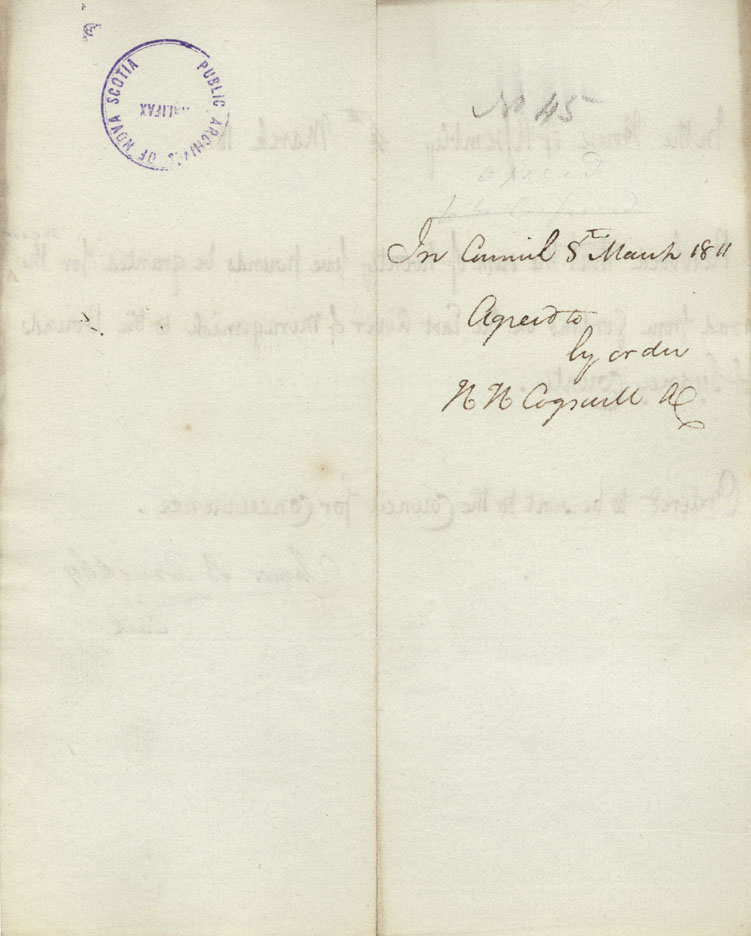 Reference: Nova Scotia House of Assembly Nova Scotia Archives RG 5 Series A volume 17 number 49