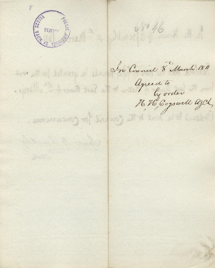 Reference: Nova Scotia House of Assembly Nova Scotia Archives RG 5 Series A volume 17 number 49