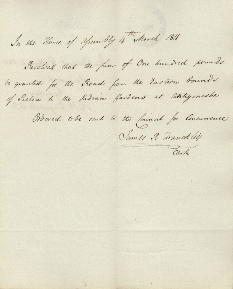 Reference: Nova Scotia House of Assembly Nova Scotia Archives RG 5 Series A volume 17 number 49