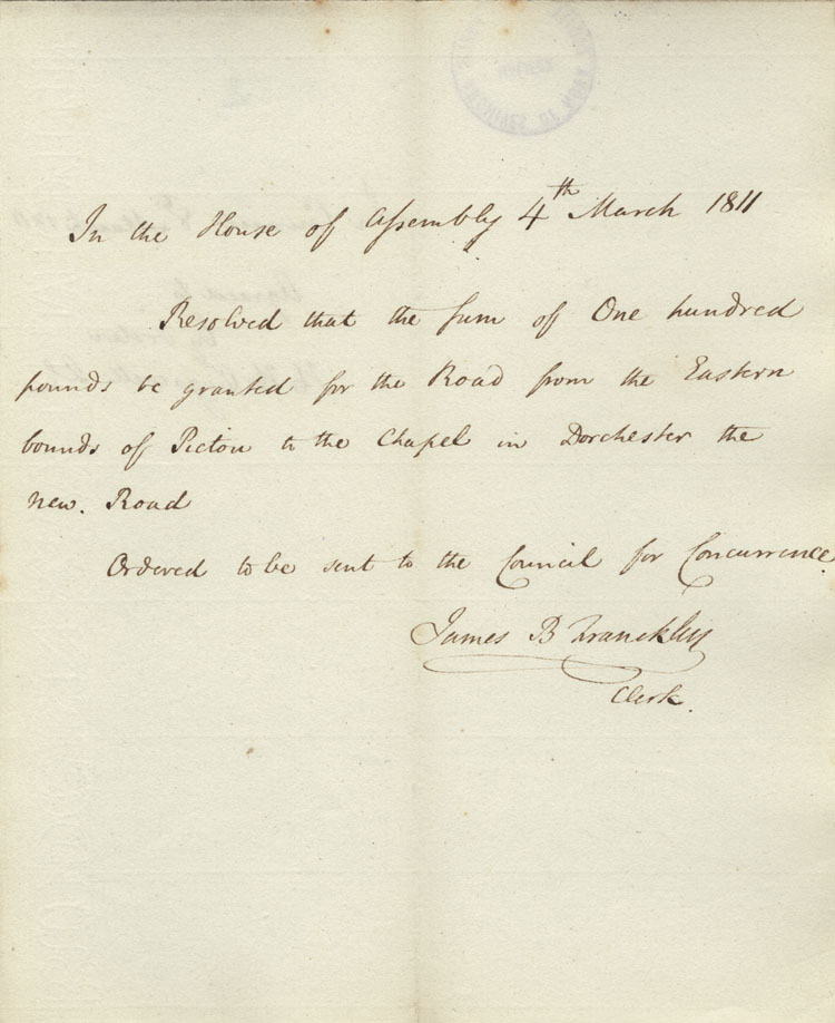 Reference: Nova Scotia House of Assembly Nova Scotia Archives RG 5 Series A volume 17 number 49