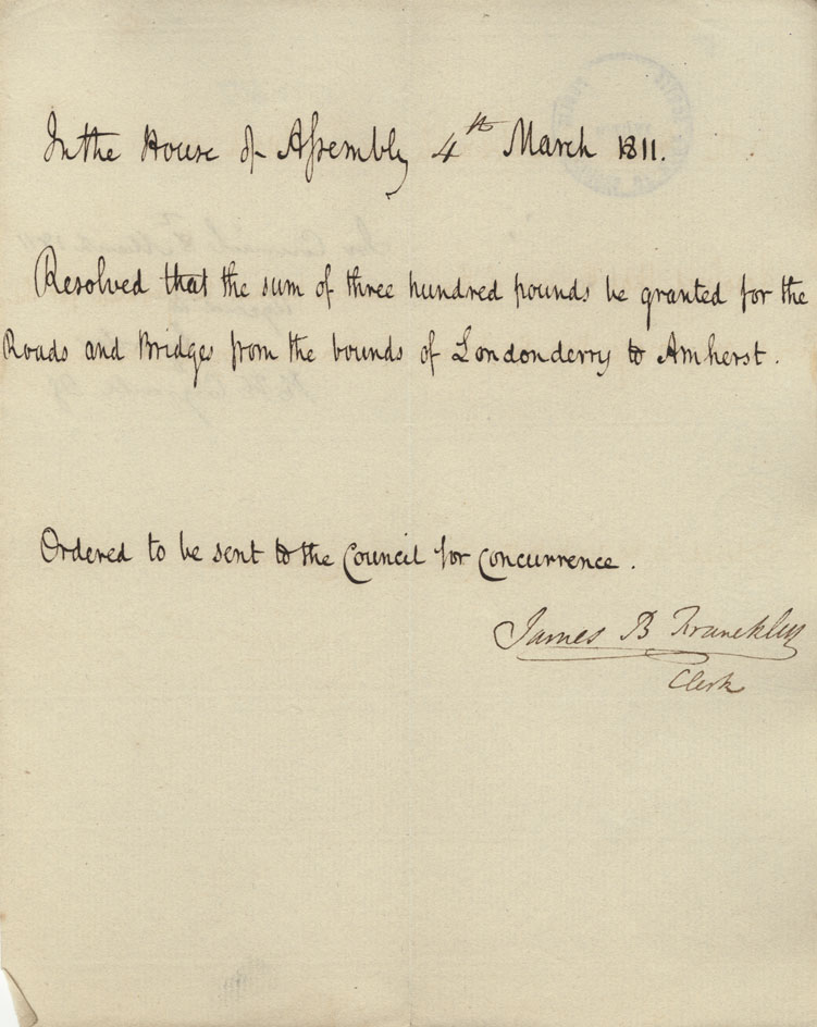 Reference: Nova Scotia House of Assembly Nova Scotia Archives RG 5 Series A volume 17 number 49