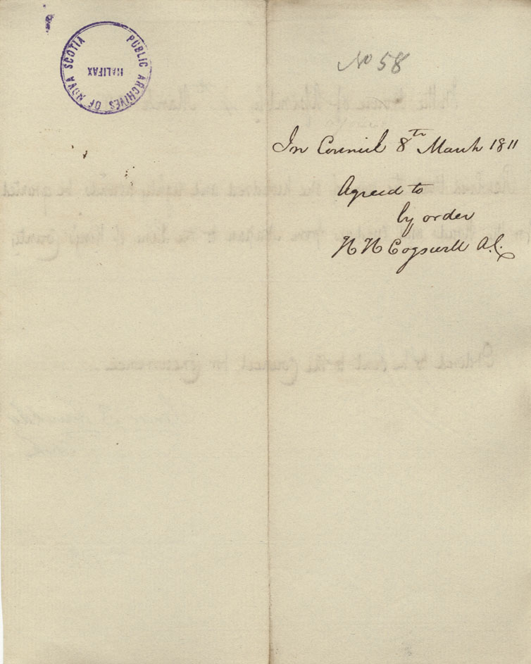 Reference: Nova Scotia House of Assembly Nova Scotia Archives RG 5 Series A volume 17 number 49