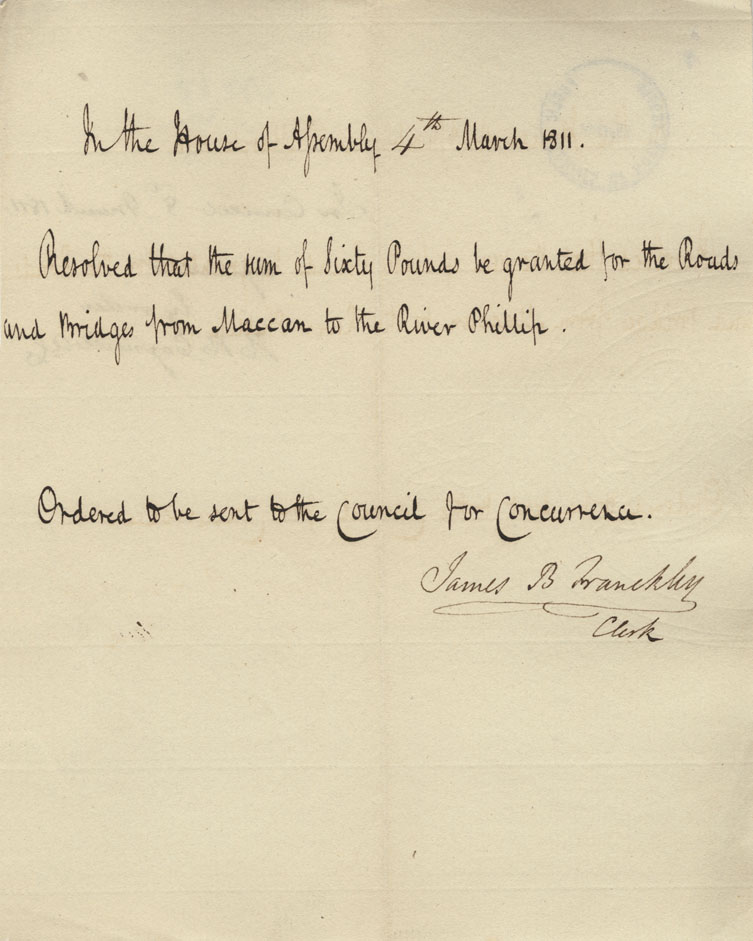 Reference: Nova Scotia House of Assembly Nova Scotia Archives RG 5 Series A volume 17 number 49