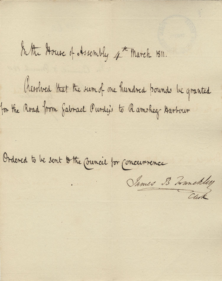 Reference: Nova Scotia House of Assembly Nova Scotia Archives RG 5 Series A volume 17 number 49