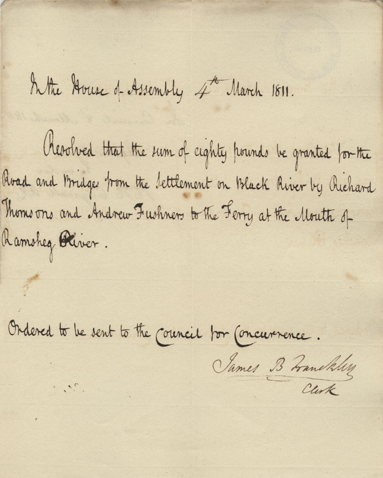 Reference: Nova Scotia House of Assembly Nova Scotia Archives RG 5 Series A volume 17 number 49