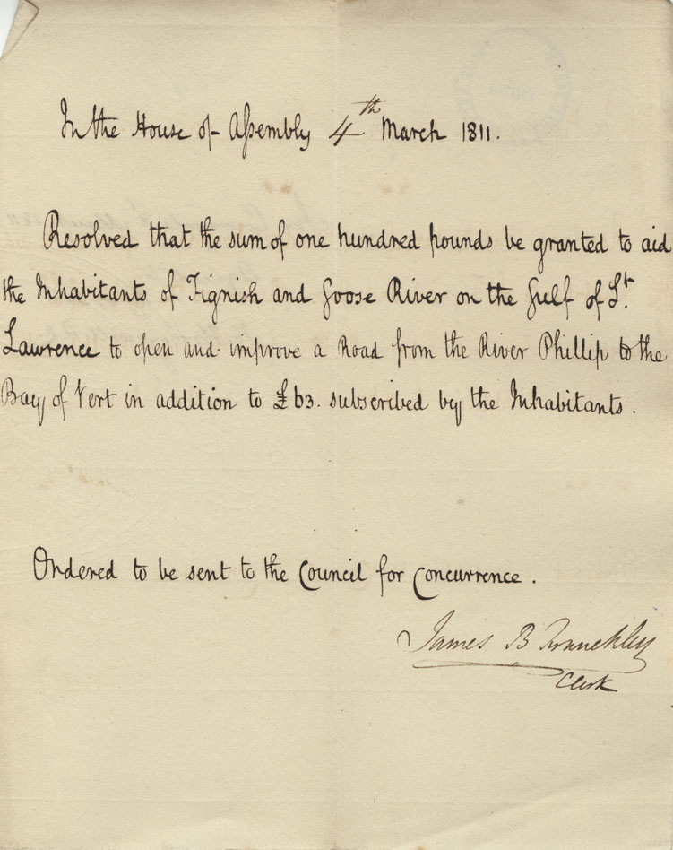 Reference: Nova Scotia House of Assembly Nova Scotia Archives RG 5 Series A volume 17 number 49