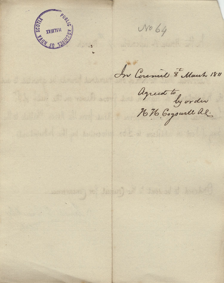 Reference: Nova Scotia House of Assembly Nova Scotia Archives RG 5 Series A volume 17 number 49