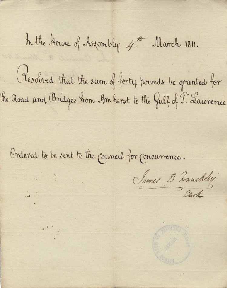 Reference: Nova Scotia House of Assembly Nova Scotia Archives RG 5 Series A volume 17 number 49