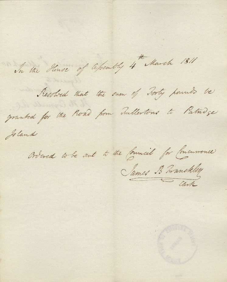 Reference: Nova Scotia House of Assembly Nova Scotia Archives RG 5 Series A volume 17 number 49