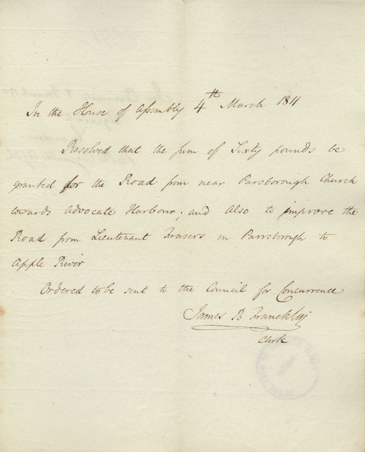 Reference: Nova Scotia House of Assembly Nova Scotia Archives RG 5 Series A volume 17 number 49
