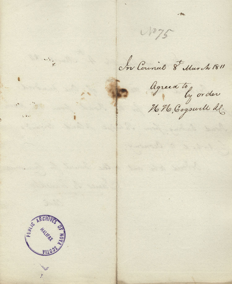 Reference: Nova Scotia House of Assembly Nova Scotia Archives RG 5 Series A volume 17 number 49