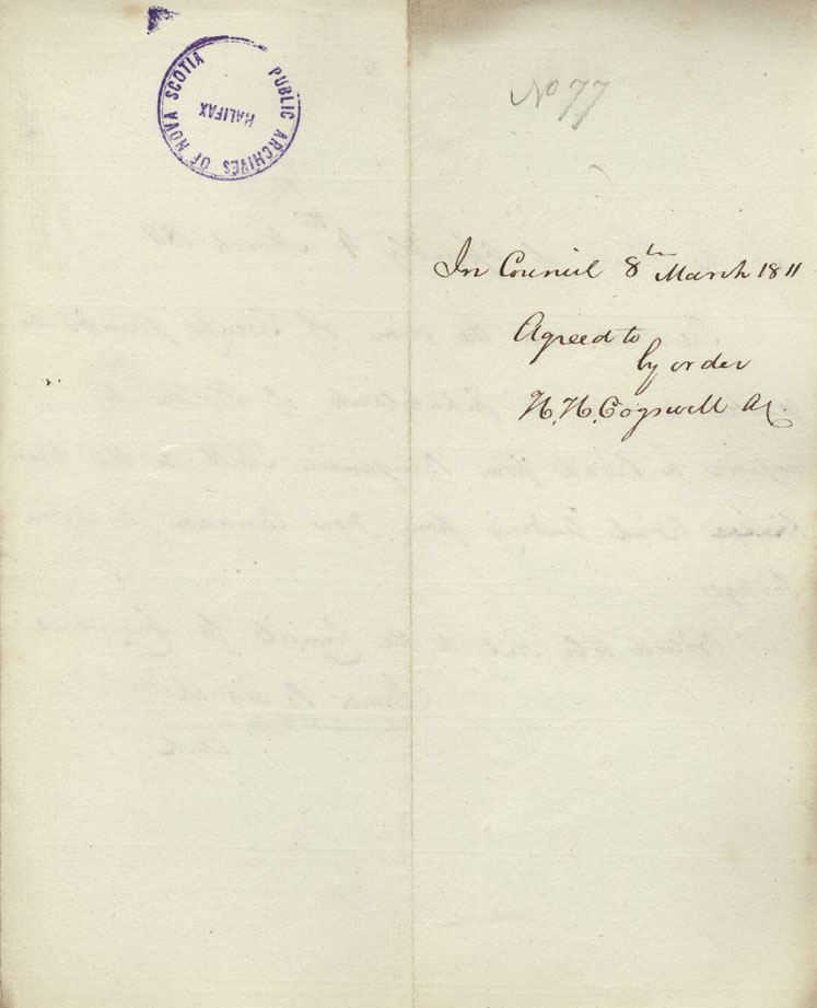 Reference: Nova Scotia House of Assembly Nova Scotia Archives RG 5 Series A volume 17 number 49