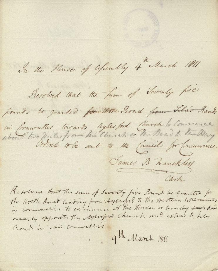 Reference: Nova Scotia House of Assembly Nova Scotia Archives RG 5 Series A volume 17 number 49