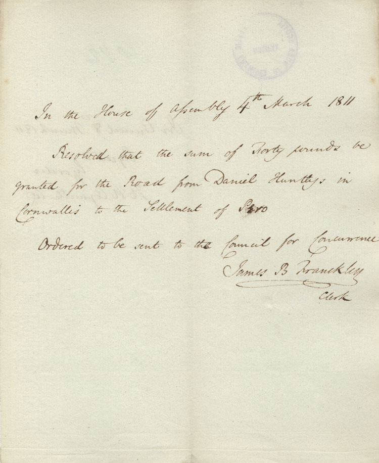 Reference: Nova Scotia House of Assembly Nova Scotia Archives RG 5 Series A volume 17 number 49