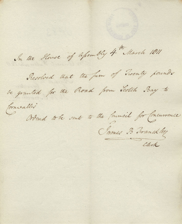 Reference: Nova Scotia House of Assembly Nova Scotia Archives RG 5 Series A volume 17 number 49