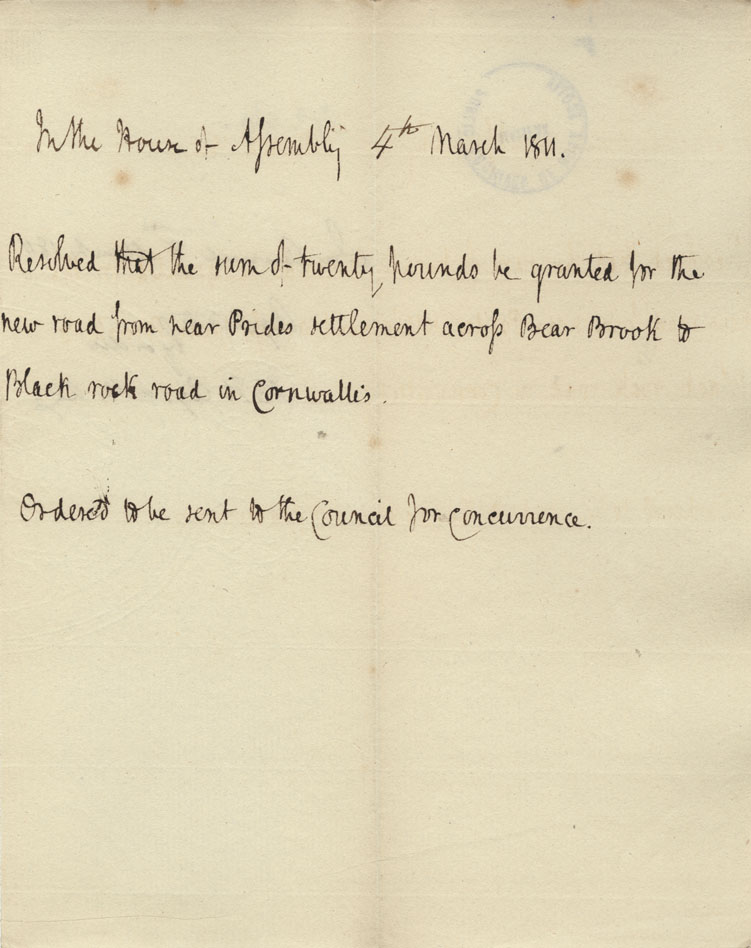 Reference: Nova Scotia House of Assembly Nova Scotia Archives RG 5 Series A volume 17 number 49