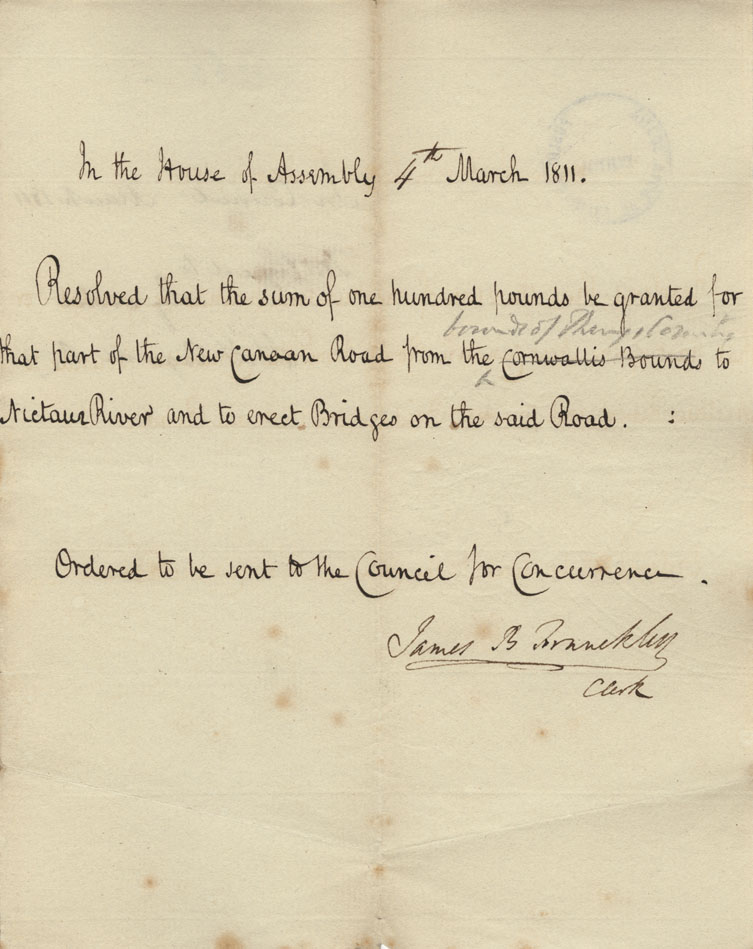 Reference: Nova Scotia House of Assembly Nova Scotia Archives RG 5 Series A volume 17 number 49