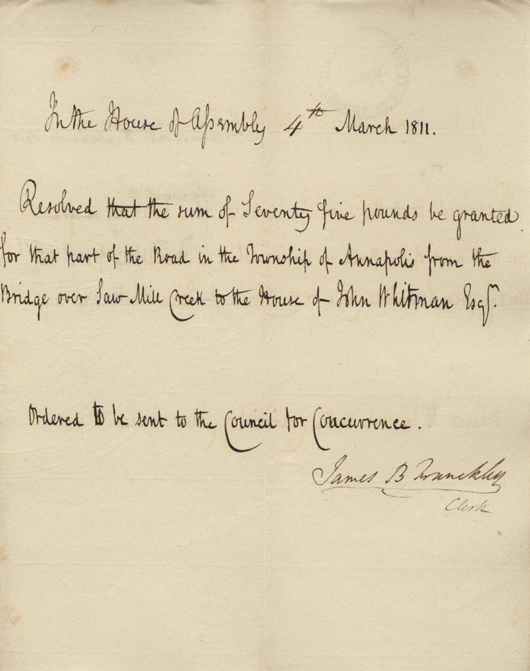 Reference: Nova Scotia House of Assembly Nova Scotia Archives RG 5 Series A volume 17 number 49