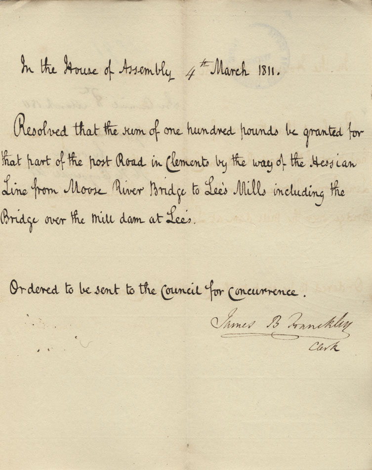 Reference: Nova Scotia House of Assembly Nova Scotia Archives RG 5 Series A volume 17 number 49