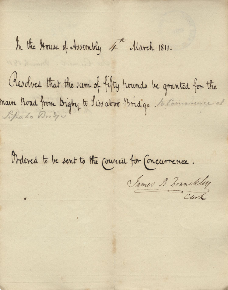 Reference: Nova Scotia House of Assembly Nova Scotia Archives RG 5 Series A volume 17 number 49