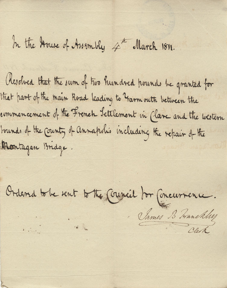 Reference: Nova Scotia House of Assembly Nova Scotia Archives RG 5 Series A volume 17 number 49
