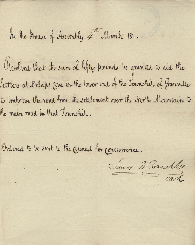 Reference: Nova Scotia House of Assembly Nova Scotia Archives RG 5 Series A volume 17 number 49