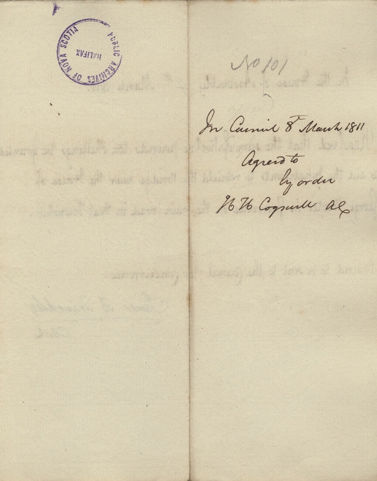 Reference: Nova Scotia House of Assembly Nova Scotia Archives RG 5 Series A volume 17 number 49