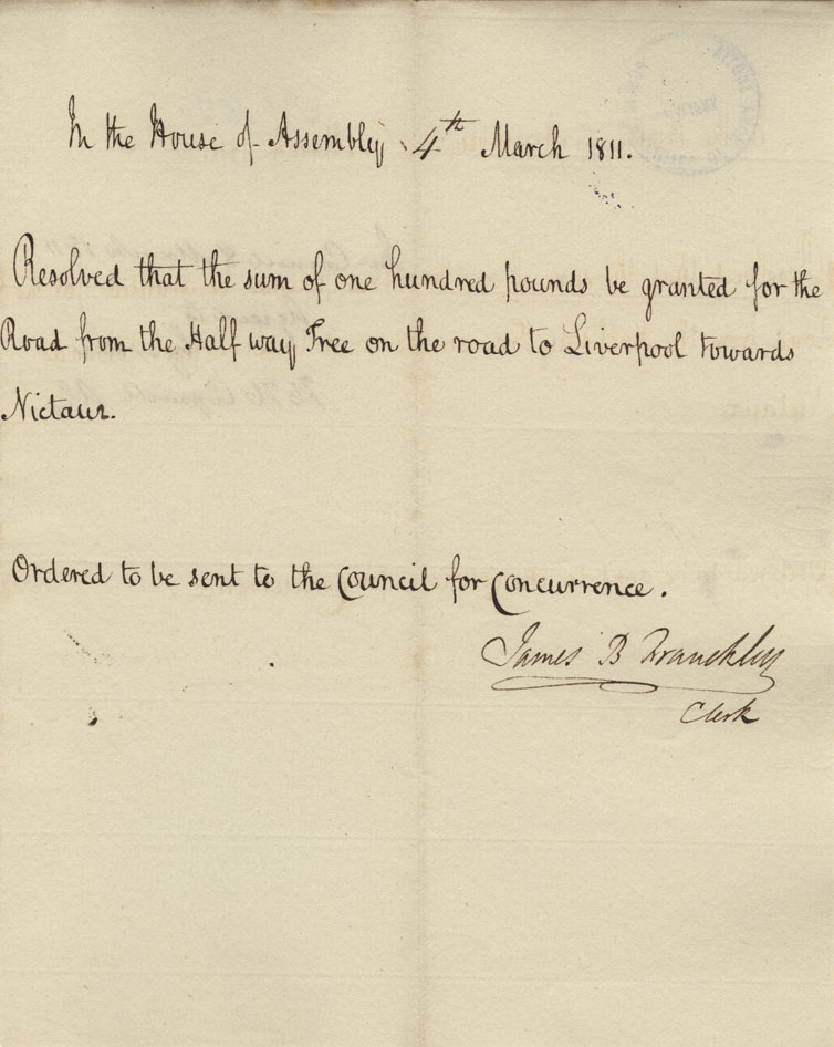Reference: Nova Scotia House of Assembly Nova Scotia Archives RG 5 Series A volume 17 number 49